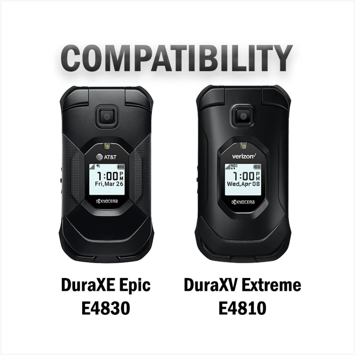 Rugged belt clip holster case designed for Kyocera DuraXV Extreme, DuraXE Epic, and DuraXA Equip. Durable, secure, and perfect for heavy-duty use—whether at work or outdoors.