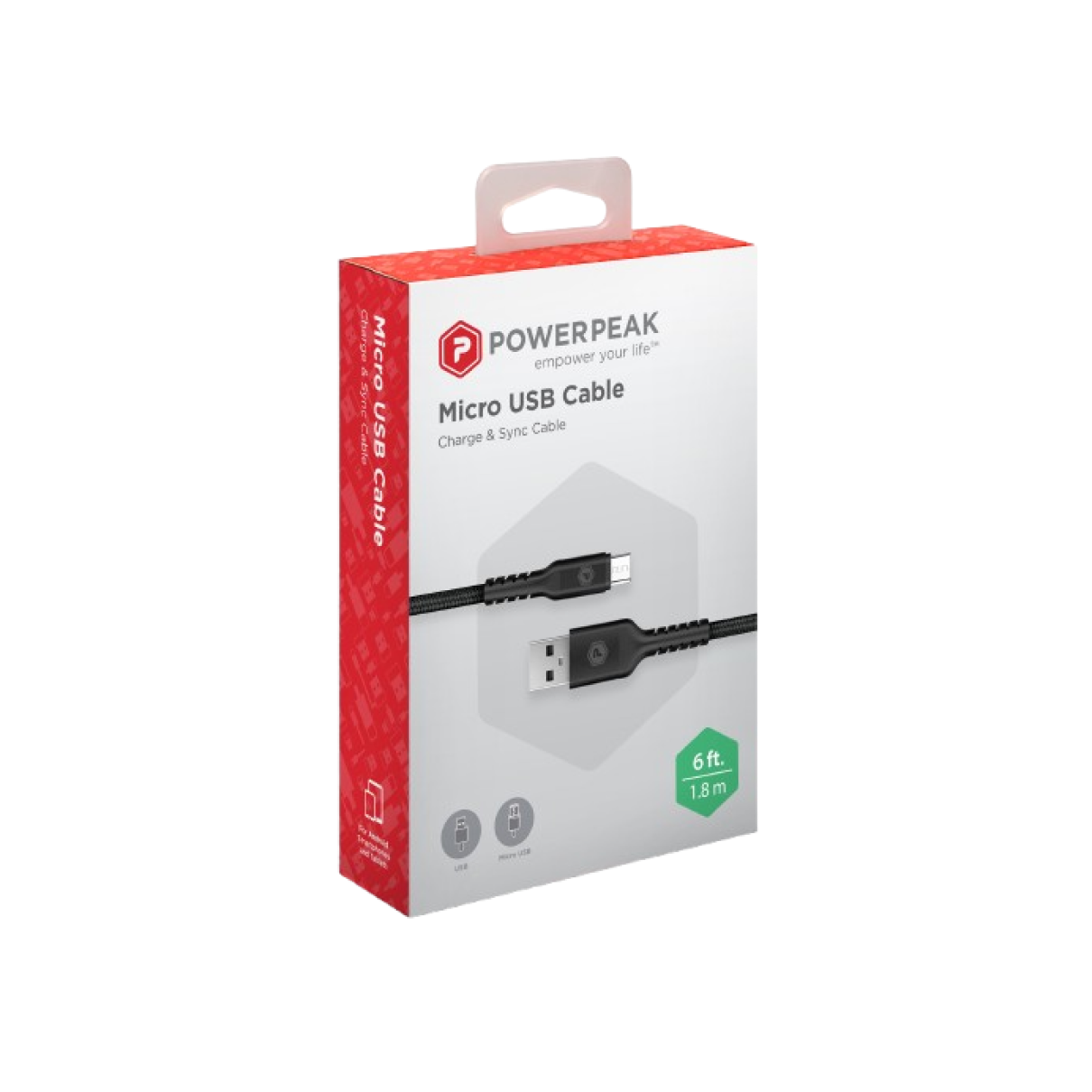 Stay connected and powered up with the PowerPeak 6ft. Braided Nylon Metallic Micro USB Charge & Sync Cable. Built for durability and performance, this cable features a tough braided nylon exterior that resists tangling, fraying, and daily wear and tear. The metallic connectors ensure a secure connection and long-lasting use, while the generous 6-foot length gives you the flexibility to charge and sync your devices comfortably from a distance. Whether you’re at home, in the office, or on the go, this cable delivers reliable high-speed charging and data transfer for all your Micro USB-compatible devices. Compatible with most Android smartphones, tablets, Bluetooth speakers, cameras, and more, this cable is a must-have for anyone needing a dependable connection every day. Finished in classic black for a modern, minimal look that pairs well with any setup.